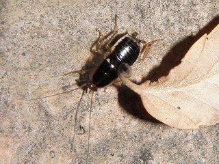 【左】トゲナナフシ、背中にトゲが生えています。 【中】ツチイナゴ、成虫越冬します。 【右】モリチャバネゴキブリ、人家には入りません。