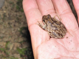 【左】イセノナミマイマイ 【中】地面と同じ色したアマガエル 【右】アマガエル