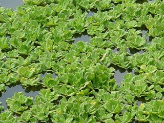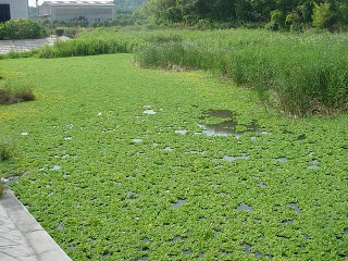 【右】ボタンウキクサ(サトイモ科)が繁茂していました。冬は枯れてしまいます。