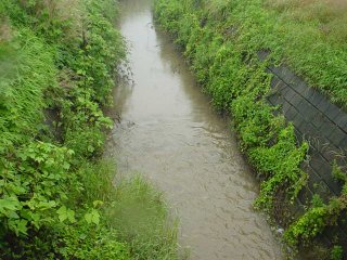【左】船島小の横を流れる上野新川です。下流は大田川になります。