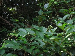 【左】公園樹などに使われるトウネズミモチです。こちらは外来種で成長が早く、たくさん種子をつけます。この種子を鳥が食べて近くの森に種子が運ばれ、たくさん生えるので生態系に問題があるそうです。
