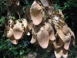 【右】アオギリの果実です。皆さんが好きなチョコレートはアオギリと同じ仲間のカカオの実から作ります。アオギリの実も食べることが出来ます。