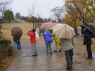 今日はあいにくの雨です、バードウオッチングには少しつらい日になりました。一般の参加者は少なく少し寂しい探鳥会になりました。