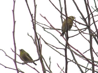 【左】なにかいるぞ! 今年は鳥が多いみたいです。 【右】メジロ