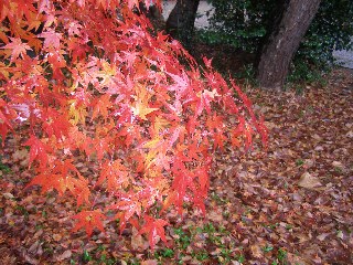 【左】モミジの名所にもなっています。 【右】ツグミ