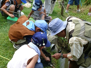 11時30分に獲れたトンボ、魚類などの解説をして解散です。暑い中お疲れ様でした。(記・岩崎)