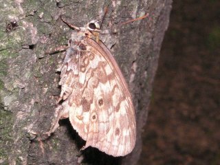 【右】サトキマダラヒカゲ(羽がぼろぼろでした。幼虫は竹類を食べ、成虫は樹液に集まります)