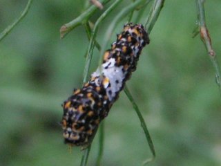 【左】キアゲハの幼虫(食草はセリやニンジンです。我が家のパセリもやられました)