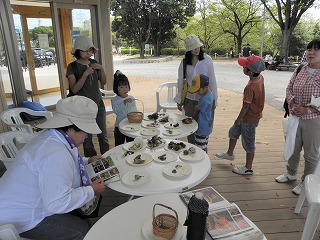 【左】参加者が集まってきました。 【右】園内を散策しました。