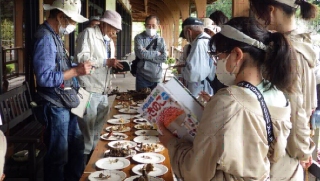 昨日の雨も上がり、快晴の秋日和に成りました。はじめの挨拶があり、その後降幡さんより「キノコ」についての図解説明をされた。キノコを理解して、興味をわかせて観察に出かける。結果は昨年より多くのキノコに出会えた。参加された家族の方々は珍しそうに手にして触れて、感触を体験し、家族で和気あいあいとキノコを求めた観察会であった。 (記:南川)