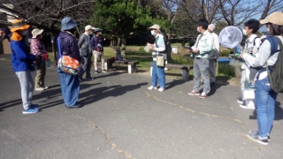 快晴の観察会日和になった。主催者知多市環境政策課からの挨拶と観察会から吉房さんから観察のポイントを