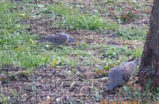 【左】クワガタ虫の幼虫    【右】キジバトが餌を啄むいます