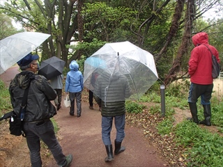 雨、それも本格的に降っていたので、参加者なしで中止かなぁ、と思いつつ集合場所の公園駐車場に着いてみると、そこそこの数の指導員の姿があり、なによりも雨にもかかわらず一般参加者がありましたので、短縮バージョンになりそうだけど一応開催しましょう、ということになりました。