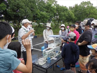 【左・中】つかまえた魚類以外の説明  【右】主催者からのお話。アンケートや次回開催のお願い