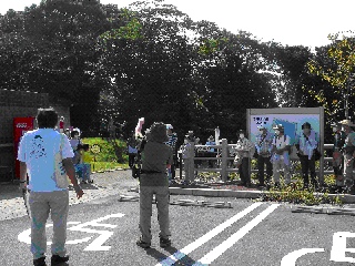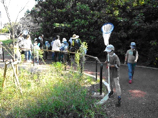 観察会は主催の半田市環境課の挨拶に続いて牧野指導員のコース及び注意事項等の説明の後、観察会に出発。グループ分けはせず、指導員が散らばり説明等をした。