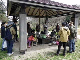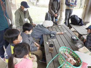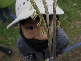里山の恵みを探すも例年よりは採集量が少ない。それでも子供たちの目とカンは鋭く、早取り?のタケノコが各家庭に何本かずつ持ち帰ることができた。