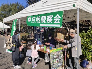 イベントでは、たくさんのブース出て賑わいました。観察コースは大府市二ツ池公園の中を家族で和気あいあいと生き物を求め散策しました。 (記:降幡)