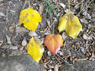【左】木の葉のお面ができました。     【右】観察グループで拾いました。