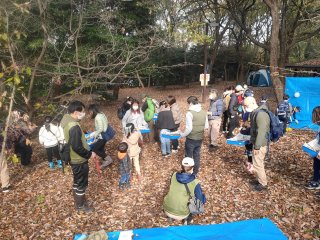 大府市二ツ池公園の中を家族で和気あいあいと工作材料を求め散策した後、セレトナの会議室に戻り楽しい工作をしました。 (記:降幡)