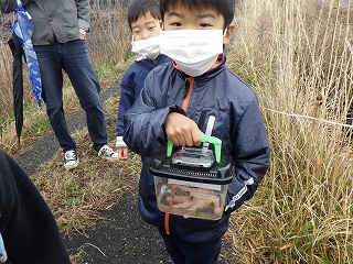 水たまりにオタマジャクシが、ヤゴが、わくわくする生き物にも出会えました。薄ピンクのショウジョウバカマも咲いていて、春の息吹をいっぱい感じることができました。