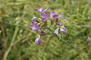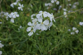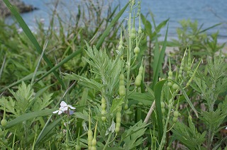 【左】ハマダイコン 紫花   【中】ハマダイコン 白花   【右】 ハマダイコン 種子を結実