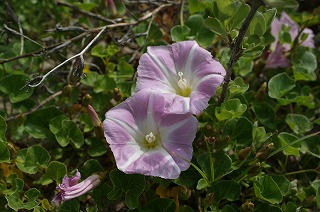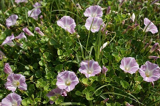 【左】ハマヒルガオ   【中】ハマヒルガオ   【右】ハマボウフウ 匍匐
