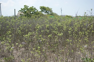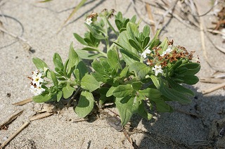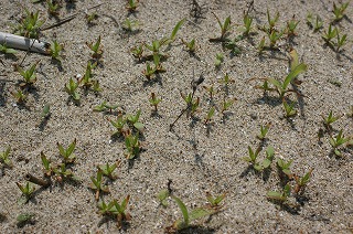 ハマヒルガオ(開花)、ハマゴウ、ハマダイコン(開花)、ハマボウフ(開花)、ツルナ、スナビキソウ(開花)、コウボウムギ(開花)、オカヒジキ、ハマアカザ、ダンチク(開花)、