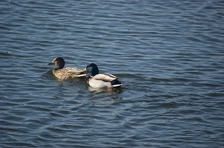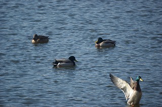【左】マガモ群   【中】マガモ雌雄   【右】コガモ