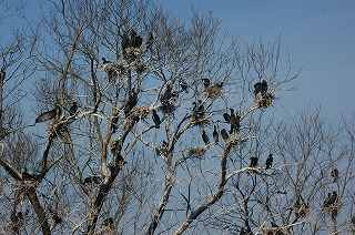 【左】カワウ営巣   【中】   【右】