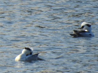 【左】ミコアイサ 3羽遊泳   【中】カワウ 雛鳥   【右】トモエガモ