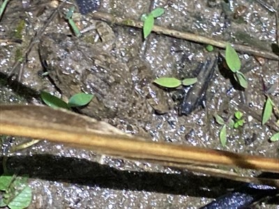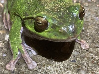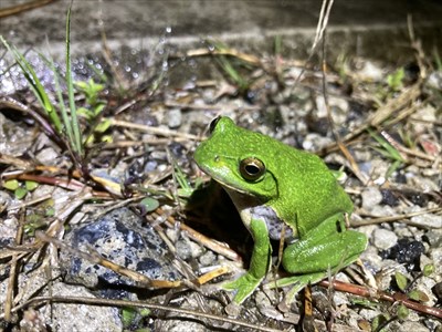 雨でしたが、開始時間は傘がいらないほど小康状態でしたので、早めにきりあげることを伝えて開始しました。一般参加者の親子は1時間前には来ていて卵塊をたくさん捕っていました。散策中に本降りに変わってきたので早々に退散しました。解散してすぐメスのシュレーゲルアオガエルを正躬先生が見つけて観察しました。みんなが帰ってから、もう1匹路上に出てきました。 (記:平松裕)