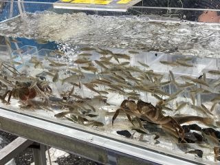 【左・中・右】参加者の自宅で飼っているうちの100匹入れて持参された。