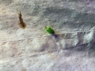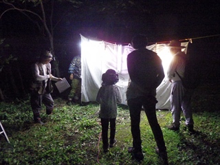 【左】ナイトハイクから無事帰還 【右】灯火に集まった虫のチェック