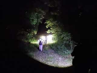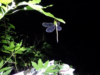 準備時点から、稲光がすごかった。参加者も少なかったので、早めの移動で振り出す前に終わることにした。台風の影響で1週間前に下見した時とは様変わりしており、クロマドホタルを見ることはできなかった。小雨が降りだした時点で終了して、30分後には土砂降りになったので良い判断だったと思う。(記:平松裕)