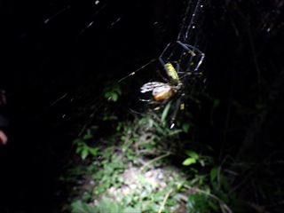 【左】担当者の始めのお話 【右】ナイトハイク。 ジョロウグモ食事中