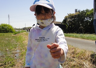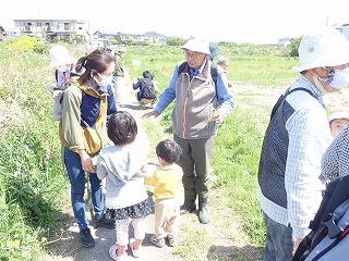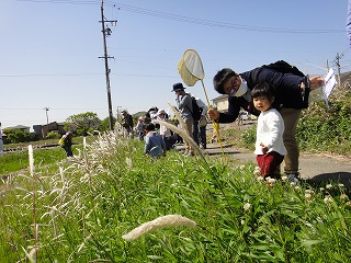 知多市こども未来館主催の「自然体験クラブ『自然観察会』」の第1回「春の野草と虫さんに会いに行こう」の自然観察会で親子連れ21人(子供12人)参加と、たくさんの親子連れにご参加いただきました。ご参加ありがとうございます。自然観察には昨日に比べ暑くはなく風も少しはあって絶好の日よりとなりました。しかし、今年は散策道沿道で草刈りや除草剤の散布によって比較的に虫が少なかった感じですが、それでも、テントウムシ探しと捕獲に夢中に、さらにはアリの捕獲まで子供たちは一生懸命でした。