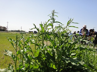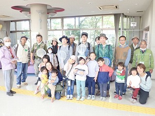 【左】カラスノエンドウのお話      【右】終了後の集合写真だよ