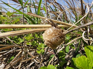 【左】オオカマキリ(卵鞘)   【中】ウノハナに留まったルリタテハ(裏面)   【右】ミノガ(蓑虫)
