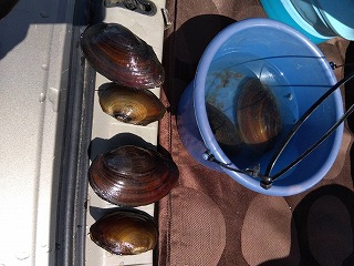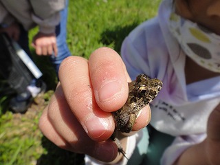 【左】ヌマガエル   【中】   【右】こども未来館裏の小川で採集したドブガイ属ヌマガイ