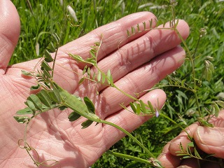 【左】カラスノエンドウ、カスマグサ、スズメノエンドウ 比較   【中】カラスノエンドウ(結実)   【右】オオイヌノフグリ