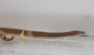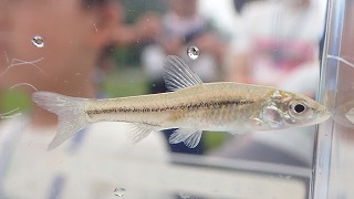 観察した生きもの (水槽) 【左】ウナギ 【中】セイゴ 【右】モツゴ 【左】ドジョウ 【右】コオイムシ・トンボのヤゴなど