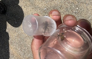 エンマコオロギ、ショウリョウバッタモドキ、マダラバッタ、ヒシバッタ、カマキリ、アブラゼミ、キマダラカメムシ、ササキリ、コクワガタ、