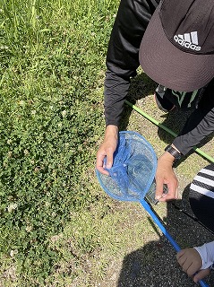 梅雨明けを思わせる素晴らしい晴天で、開始時の気温27℃という放送。ほとんどが親子連れ。一名だけ虫好きで将来自然関係の仕事につきたいという横高の高校生男子が参加。
