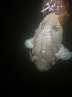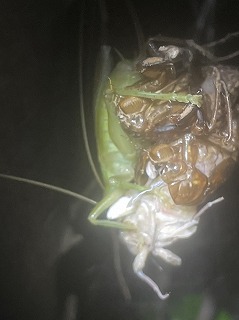 【左】 【中】 【右】アブラゼミ 脱皮中