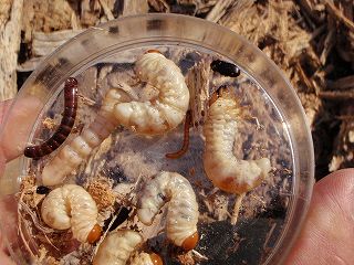 【左】キマワリやコクワガタなどの幼虫 【右】コガタスズメバチ…冬眠中を起こして…