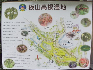 【左】板山湿地の解説版を見てお話を聞きました。 【右】湿地の遊歩道を進みました。
