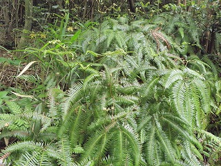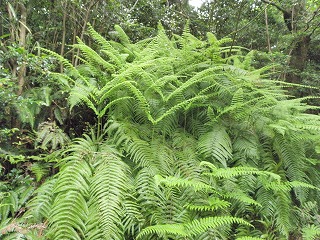 【左】ウラジロの新芽 【中】コシダの新芽 【右】クロコブタケ