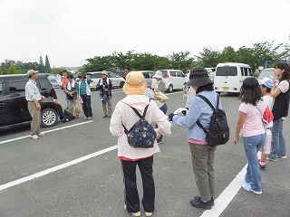 一週間前の天気予報では雨マークでしたが二日前から雨マークもなくなり山中コースを設定し草刈を前日実施、そのせいか当日は曇り空で観察日和でした。出発前にコー スの説明、湿地内での注意事項、参加者の健康状態を聞き出発する。