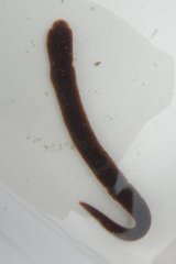 【左】細かい生き物も採集しました 【中】プラナリヤ(外来種?) 【右】タモロコ