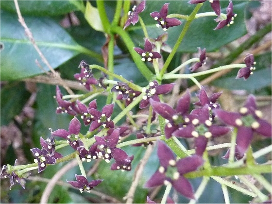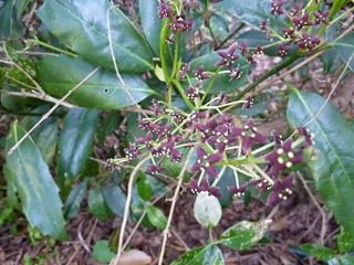 【左】幼虫探し 【右】アオキ…雌雄異株…雄花,写真クリック→拡大
